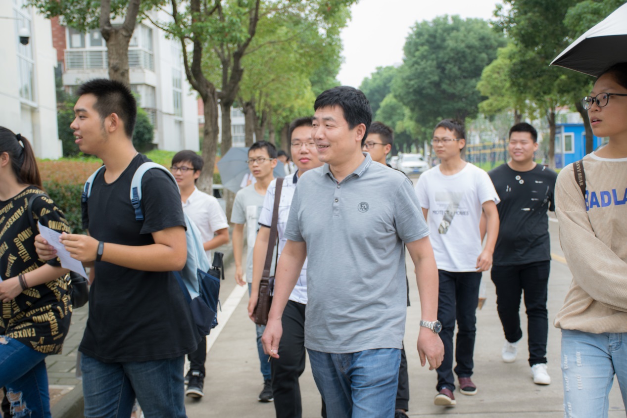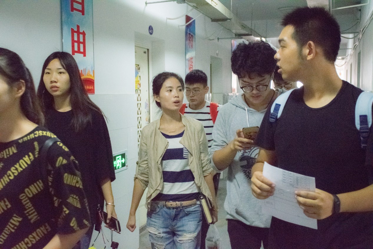 众人来到我院17级新生的北区宿舍走访调研。一行人查看学生寝室卫生状况及检查是否存在安全隐患。院领导、老师们详细询问学生们的寝室生活,并强调寝室安全及整洁问题,不使用违禁大功率电器,防火防盗、拒绝陌生人推销和提防不明小广告。