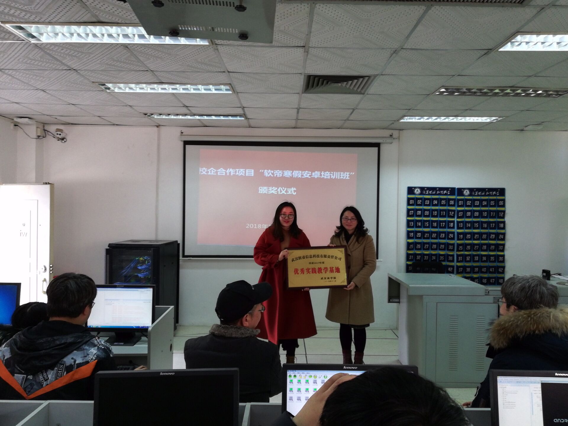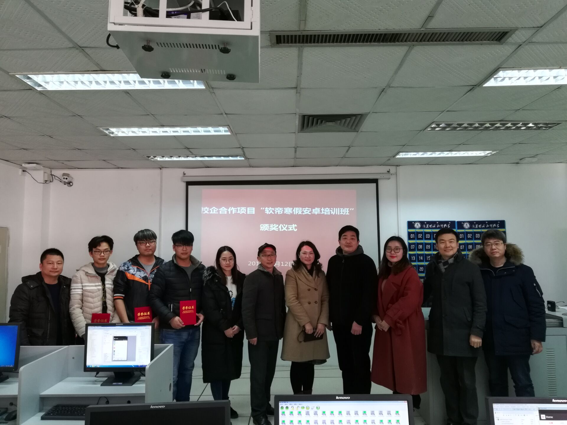 2018年1月8日-12日,武汉软帝信息科技有限责任公司来校对国产精品羞羞无码久久久创E社团学生进行Android企业项目。通过培训,将“企业的内容”以“实训的形式”来“完成对人才的培养”,促进了国产精品羞羞无码久久久学生创新实践能力的培养和提升。