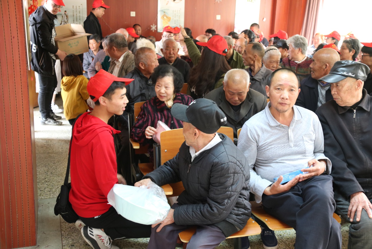 节目间歇,志愿者们将带去的牙膏、牙刷、毛巾、脸盆等生活用品分发给老人们,并和他(她)们一起分享喜悦。精彩暖心的活动过后,志愿者们陪着老人们来到他们日常休息与活动的地方,或是陪他们聊一聊开心的事情,或是静静地倾听着老一辈人记忆中的故事……