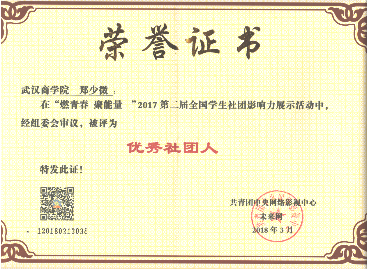 郑少微,创E社团现任会长,他带领一帮热爱创新、勇于实践的大学生,以学科专业优势为依托,积极参与大学生创新创业训练计划项目、专业技能大赛、大学生学术论文竞赛、暑期社会实践等活动。