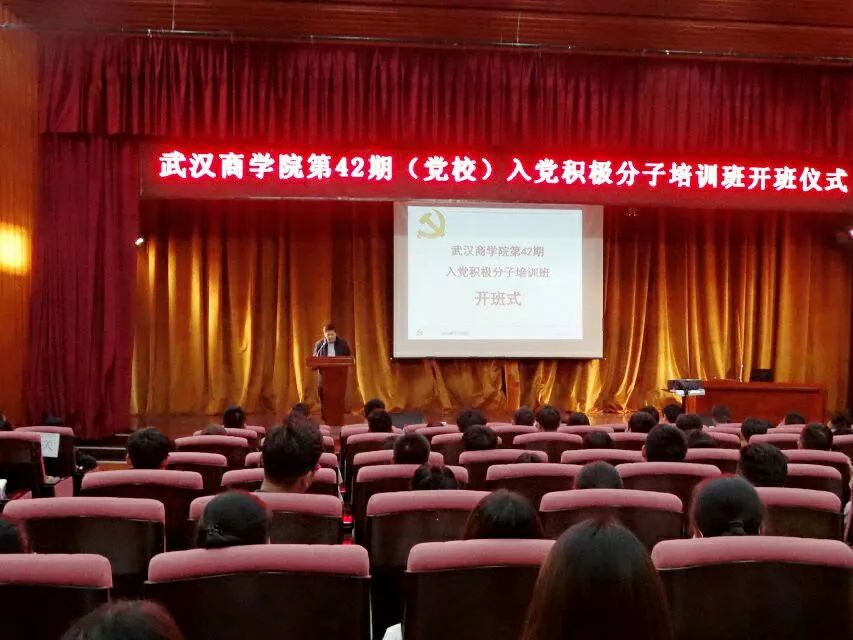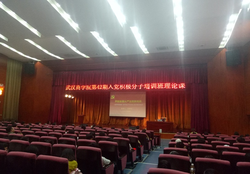 2018年5月7日,由我院和外国语学院共同承办的武汉商学院第42期入党积极分子培训班在图书馆报告厅举行了开班仪式,校组织部常务副部长对开班仪式予以寄语;5月21日举办了培训班理论课的闭幕式,校党委委员王辉华副校长做了专题党课报告。