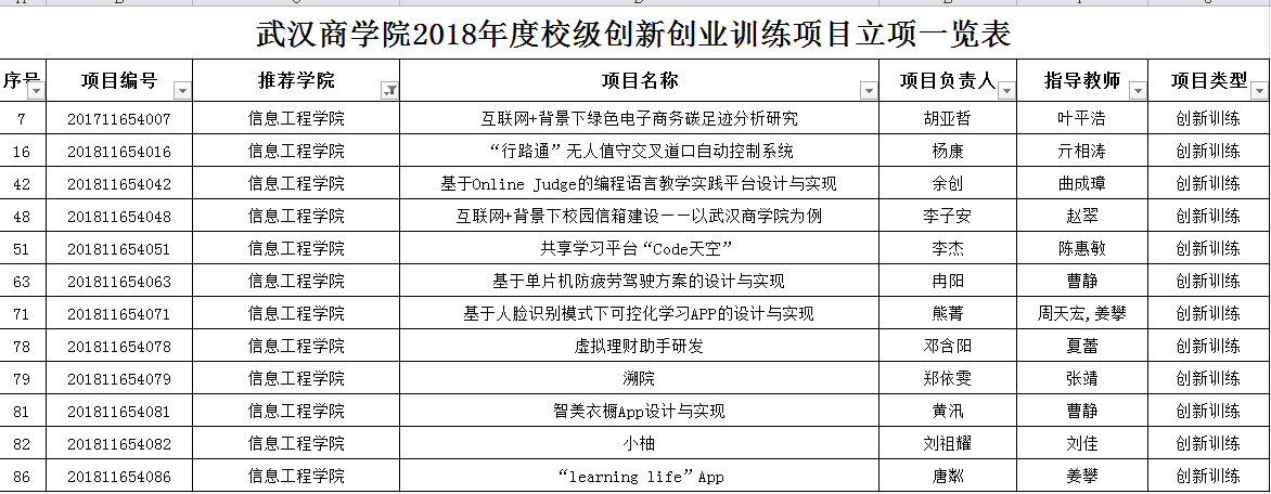 2018年5月23日,武汉商学院教务处发布了《关于公布2018年校级创新创业训练项目立项的通知》,国产精品羞羞无码久久久共有12项获批立项。