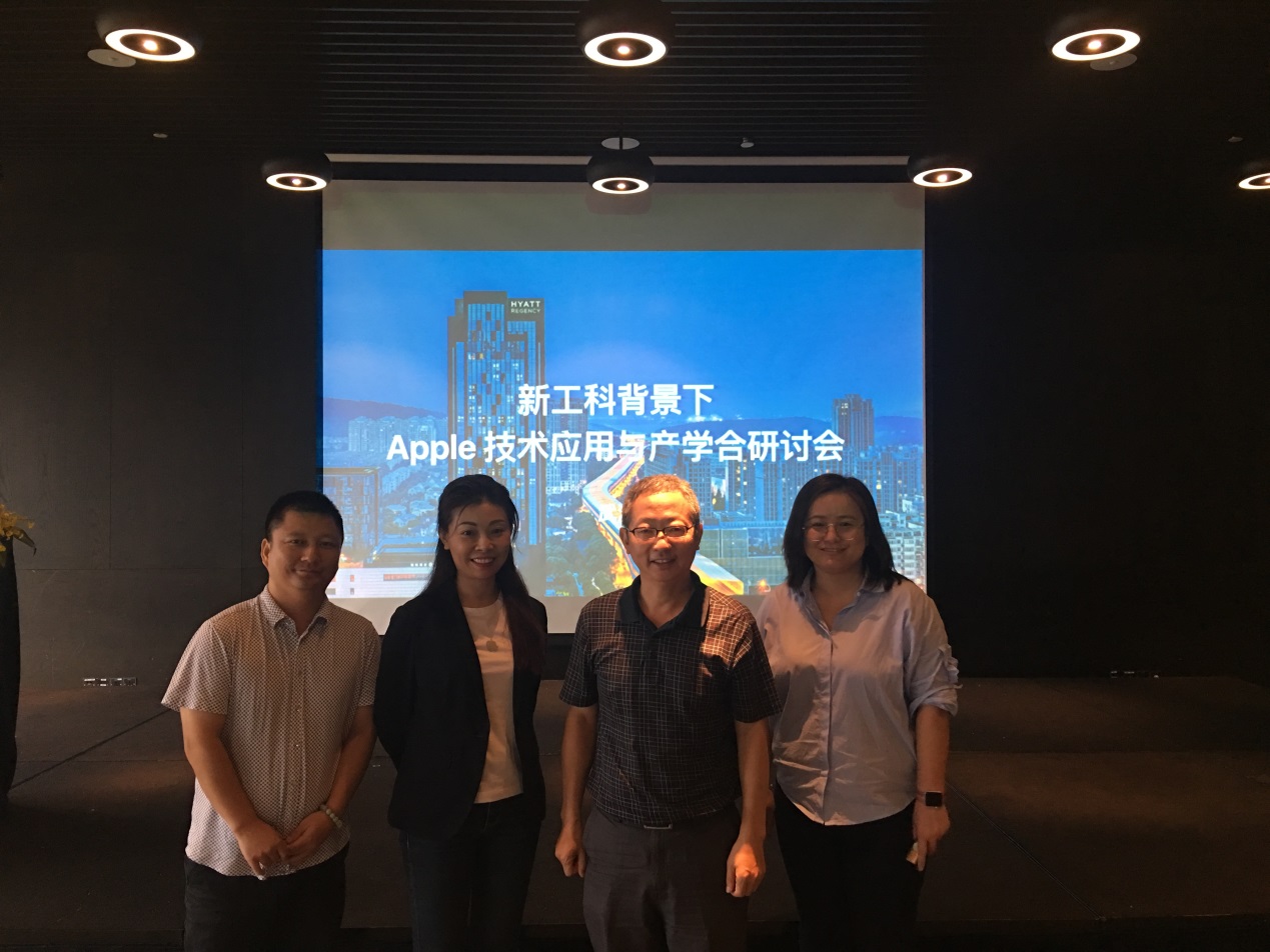 2018年6月22日,国产精品羞羞无码久久久周天宏院长和姜攀等两位老师在华中科技大学参加了新工科背景下Apple技术应用与产学合作研讨会。