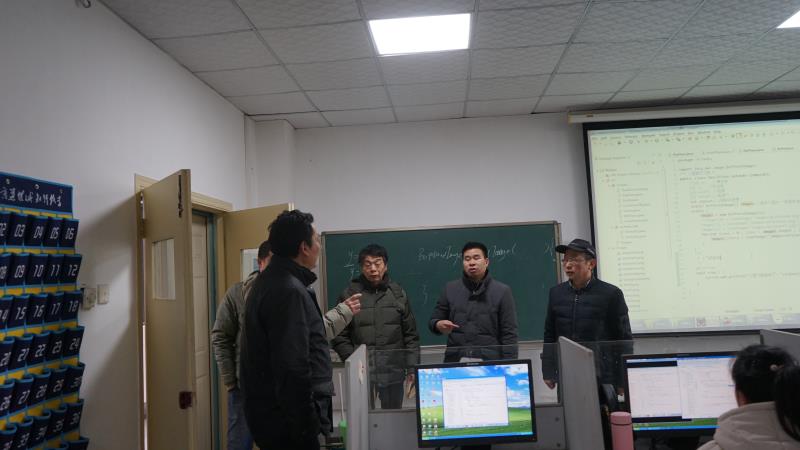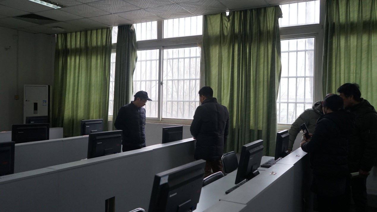 2019年1月8日下午,教务处副处长黄美忠和保卫处主任韩前文一行6人来国产精品羞羞无码久久久检查实验实训室安全隐患问题。此次重点检查了南2-303和南2-304实验室,针对发现的安全隐患问题,现场商讨整改措施。我院周天宏院长,实训室主任李志等老师参加了检查。