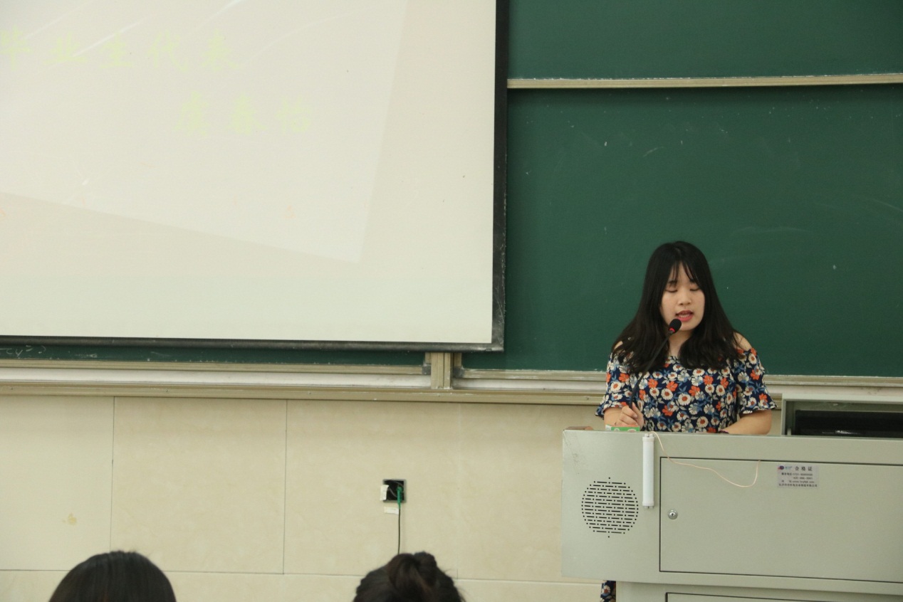 毕业生代表学生虞春怡发言。她分享了三年里在国产精品羞羞无码久久久学习、生活的收获与感慨,同时表达了对学院的衷心感谢与对校园时光的依依不舍。