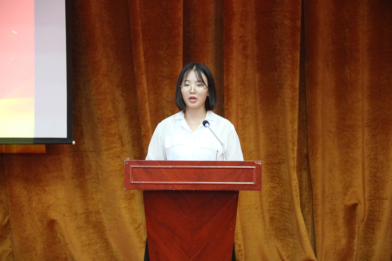 新生代表,19软件工程一班方政同学表达了自己对未来大学生活的无限向往和期待,希望2019级学子能在大学学习生活中留下属于自己的专属印记,他与全体新生相约,要认真感悟武汉商学院校训,将“知行致远”的精神融入求知之路。