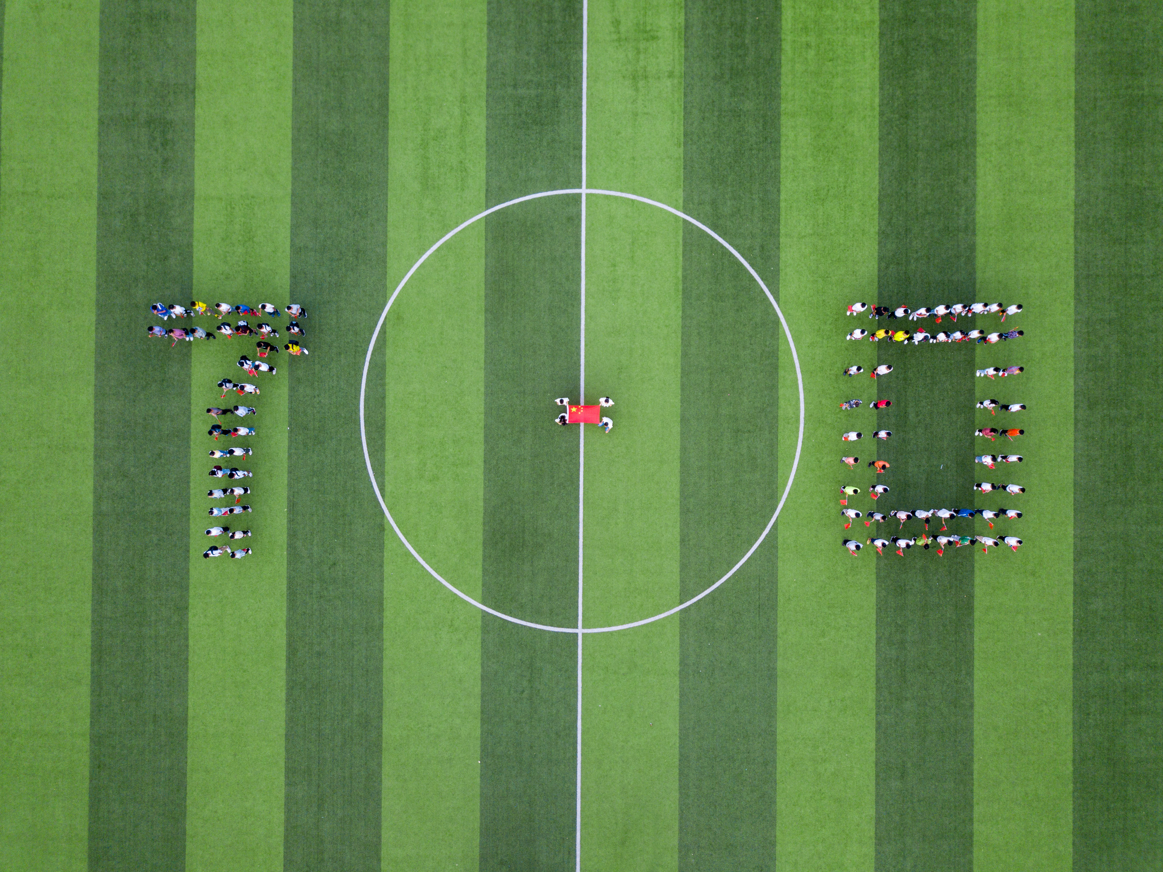 全体同学怀揣着对祖国满满的敬意和热爱,早上七点在南区操场集合,手中挥舞着鲜艳小红旗,随着歌曲整齐的舞动,整齐划一场面十分震撼,全体队员摆出“70”的形状,这是给祖国妈妈的生日礼物,大家一起高声欢呼。