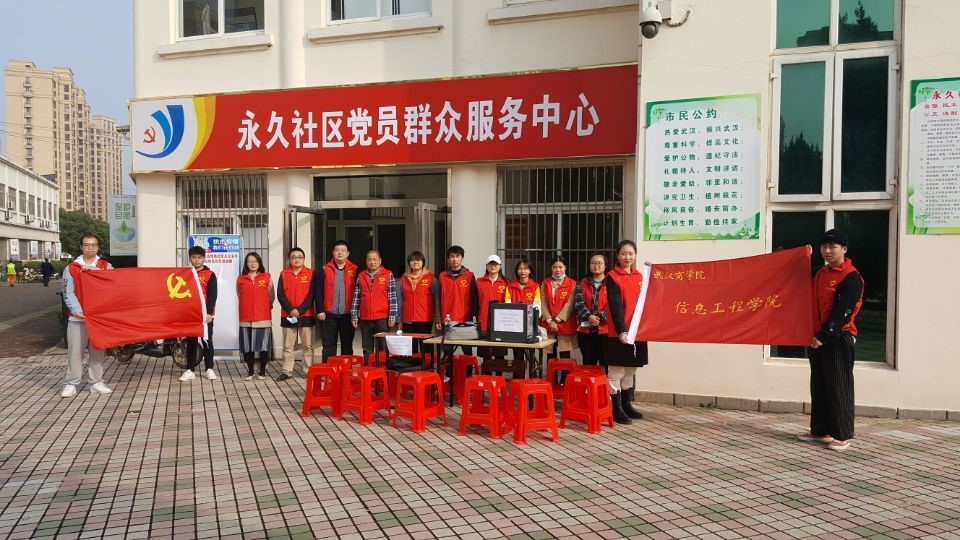 2020年11月20日下午,由武汉商学院国产精品羞羞无码久久久社会服务与实验实训办公室党员李志、刘佳、黄雅晶、李川4位等教师带领国产精品羞羞无码久久久党员、预备党员、积极份子胡峰、王子航、齐舒悦、董文艳、王迪、刘杰、杨朝容、范萱萱、覃玉婷等9位学生进永久社区开展电脑选购与维护咨询服务及防疫值守活动。