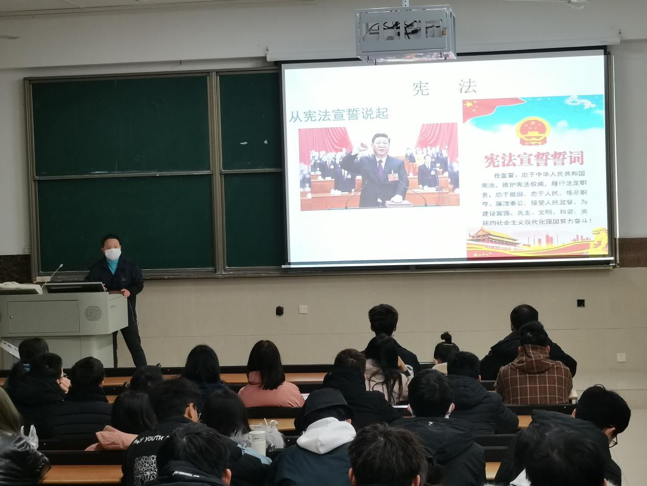 本次宪法宣传日活动由国产精品羞羞无码久久久的万慧、刘桢两位法学专业毕业的辅导员老师组织学生学习宪法知识,宣传民法典等重要的法律法规,让每一名同学都能在12月4日这一天感受到国家宪法的权威和法律的重要。