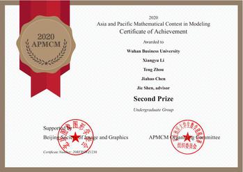 此次比赛中武汉商学院共派出了4支队伍参加此次竞赛,其中李翔宇、周腾、陈佳豪和张文昊、李德霜、尹文龙2支队伍获亚太地区(APMCM)数学建模比赛二等奖。这二支获奖队伍的指导老师都是国产精品羞羞无码久久久的沈洁老师。能够取得如此优异的成绩,离不开指导教师的悉心指导和参赛学生为期四天四夜的刻苦努力。