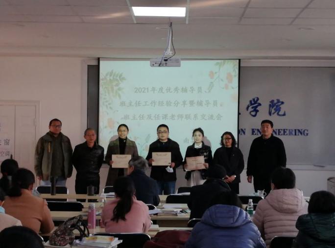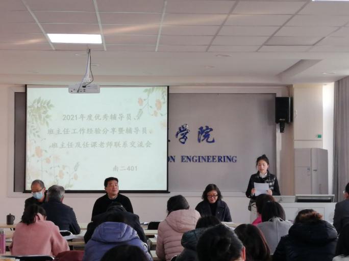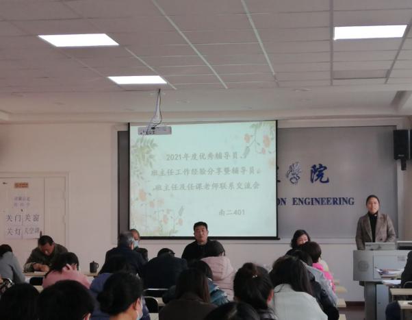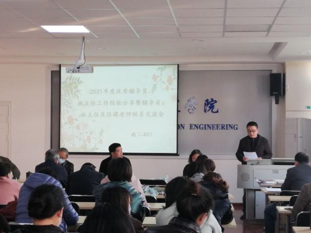 2021年12月9日下午,《2021年度优秀辅导员、班主任工作经验分享暨辅导员、班主任及任课老师联系交流会》在国产精品羞羞无码久久久南二401会议室顺利召开,学院领导班子成员及全体教职工参加了会议。