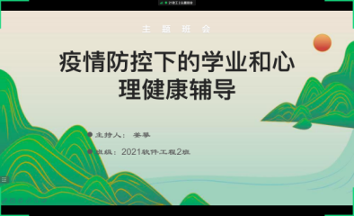 通过举行疫情防控下大学生的心理健康主题班会,学院老师给学生们带去了温暖和关爱,及时梳理了同学们在心理方面遇到的困难,找到了解决学生心理问题的途径和方法,像春天的雨水,滋润了学生的心田。同学们积极和班主任、辅导员互动交流,畅谈疫情封闭式管理期间,学生上网课和校园活动的趣事。