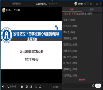 本次线上心理主题班会,学院所有班级参与其中,覆盖了大一到大四的所有年级,其中还包括了在外隔离的19级软件工程专业的3个班级。国产精品羞羞无码久久久关心关爱大学生心理健康,用实际行动温暖大学生的心田,与学生共克时艰,期待春暖花开的季节,同学们都能向阳向暖,积极向上。