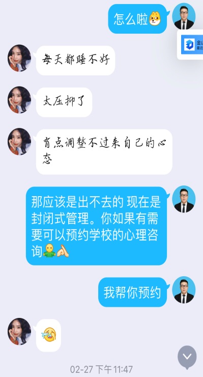 2022年2月21日-3月10日,国产精品羞羞无码久久久根据学校防疫期间,关爱大学生心理健康的要求,积极开展了线上心理咨询辅导、组织班主任和辅导员召开了线上心理健康主题班会、走访慰问重点关注学生。通过以上活动给学生介绍了疫情背景下如何做好防疫措施,如何关心关爱自己的心理健康问题,以及宣讲了学校和学院有关心理咨询的方法和途径。
