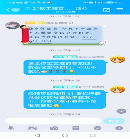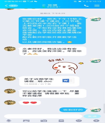 通过开展疫情防控下大学生的学风学业和防疫主题班会,学院老师给学生们传达了最新的防疫形势和政策,给学生进行了学业方面的指导和提醒,勉励需要补考和重修的同学抓紧时间进行复习,重视自己的学业,鼓励其他同学积极准备英语四六级考试和专业学科竞赛,高年级的学生充分准备好考研和就业,为自己的未来前程夯实好学业基础。