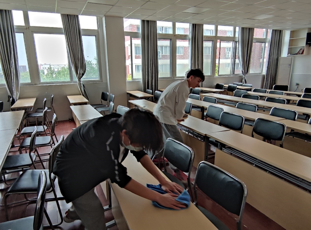 为不断提升学院卫生水平,助力新学期疫情防控工作,4月15日起,我院组织开展大学生劳动教育实践活动。由社会服务与实验实训办公室组织协调,安排21级各班对学院实验室、会议室等公共区域进行了卫生大扫除。劳动中同学们相互帮助,干劲十足,忙碌的身影在初春暖阳下穿梭。经过清扫,学院实验室整洁如新。