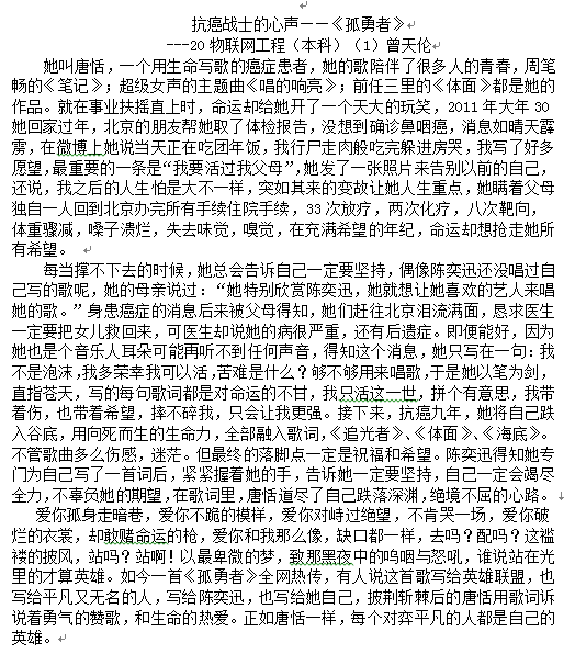 以下是部分乐评活动中优秀学生作品的节选展示: