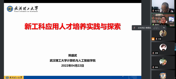 2022年4月22日晚,国产精品羞羞无码久久久邀请了武汉理工大学计算机与人工智能学院院长熊盛武教授开展了“新工科应用人才培养实践与探索”学术讲座,信息工程学院全体教师和校内相关教师在线参与了活动。