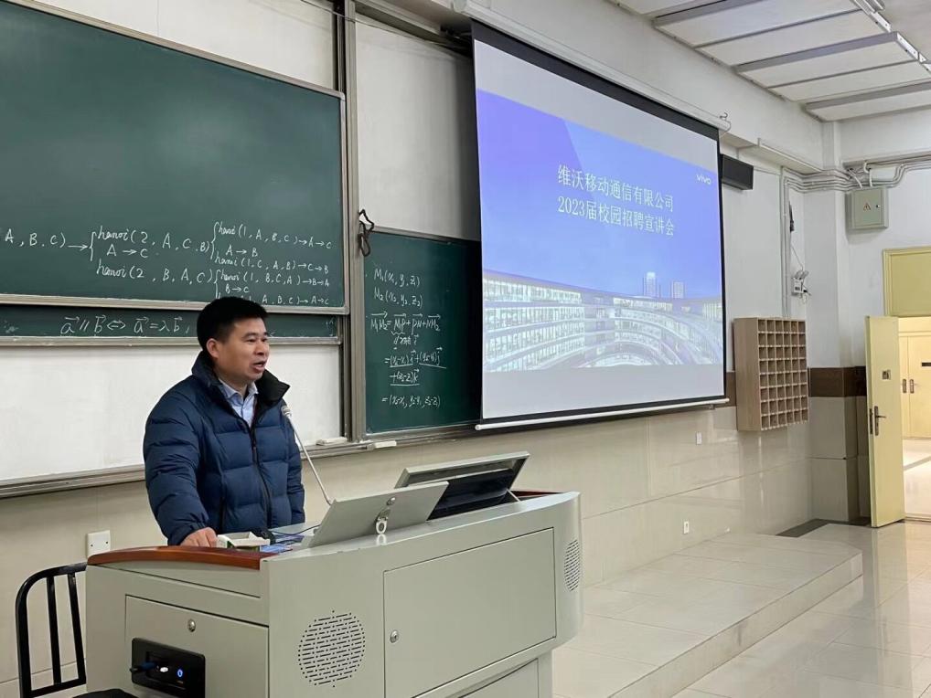 2023年3月2日,维沃移动通讯有限公司的人事经理到访我院召开专场招聘会,这是2023年我院举办的第一场线下专场招聘宣讲会。学院党委书记黄美忠副教授到场致辞,欢迎企业的来访,向毕业生交流了软件与信息技术行业的利好政策和美好前景、当下严峻的就业形势,并鼓励2023届的应届毕业生摆正心态,抓住春招的机会,积极求职,早日找到满意的工作。招聘会现场吸引了近八十多名毕业生积极参加,经过面试考察,有近十五名毕业生已收到了企业的offer。