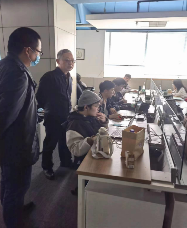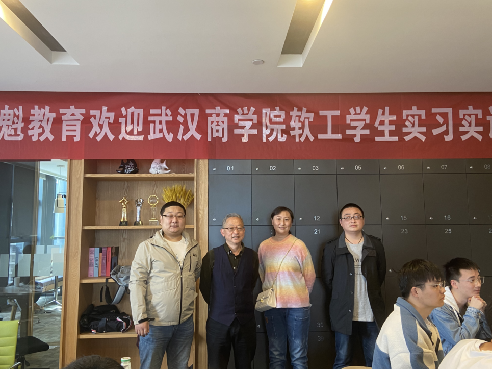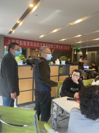在上海新魁教育科技有限公司武汉实习基地,周院长与正在实习基地参加集中实习的软件工程专业毕业生和企业实习指导老师进行了亲切交流,仔细了解了学生的毕业实习的进展、生活中的饮食和住宿情况。