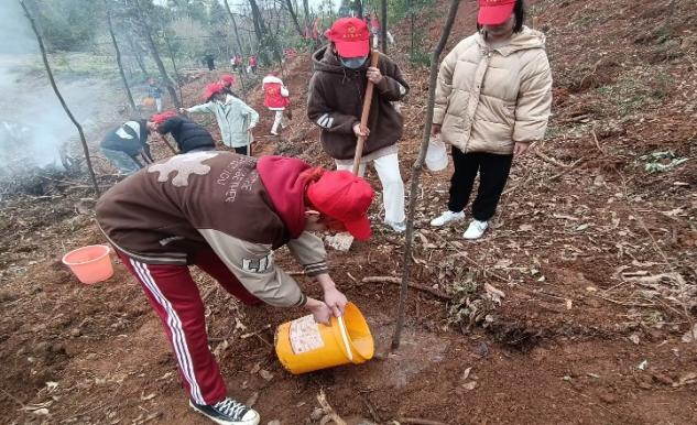 挖坑、栽植、填土、浇水、覆土,各个环节衔接有序,现场一派热火朝天的景象,师生在劳动中诠释对大自然的热爱,为初春林场增添了一份生机,为春天增添了一抹绿意。