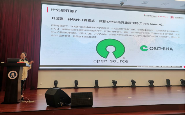 章伟讲师通过他生动有力的演讲而又振聋发聩的演讲,完美解读了开源的定义,开源在各领域的应用,为同学们接触开源做了启蒙教育,具体从以下四个方面进行介绍: