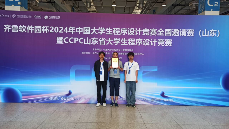 2024年5月25日至26日,由ACM协会派出的贾锐哲、熊子豪、魏翔三名同学组成的队伍“线段树维护图上DP网络流自动机”参加了2024年CCPC全国邀请赛(山东)暨山东省大学生程序设计竞赛。经过5个小时的角逐,三人最终以7题、团队总排名89,学校总排名62的成绩获得银牌。这也是我校在ICPC及CCPC系列赛事中取得的最好成绩。