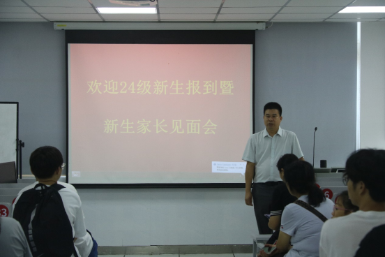会上,黄美忠书记围绕学院历史沿革、专业特色、师资力量、科研实力、竞赛获奖、升学就业前景等方面对学院进行了系统介绍。黄美忠代表学院向2024级新生和家长表示祝贺和欢迎,同时提出希望和勉励。一是要独立自主,培养良好的学习和生活习惯,不断夯实知识基础;二是要通过不断的学习和历练,提升创新能力;三是要培养坚忍不拔的毅力。