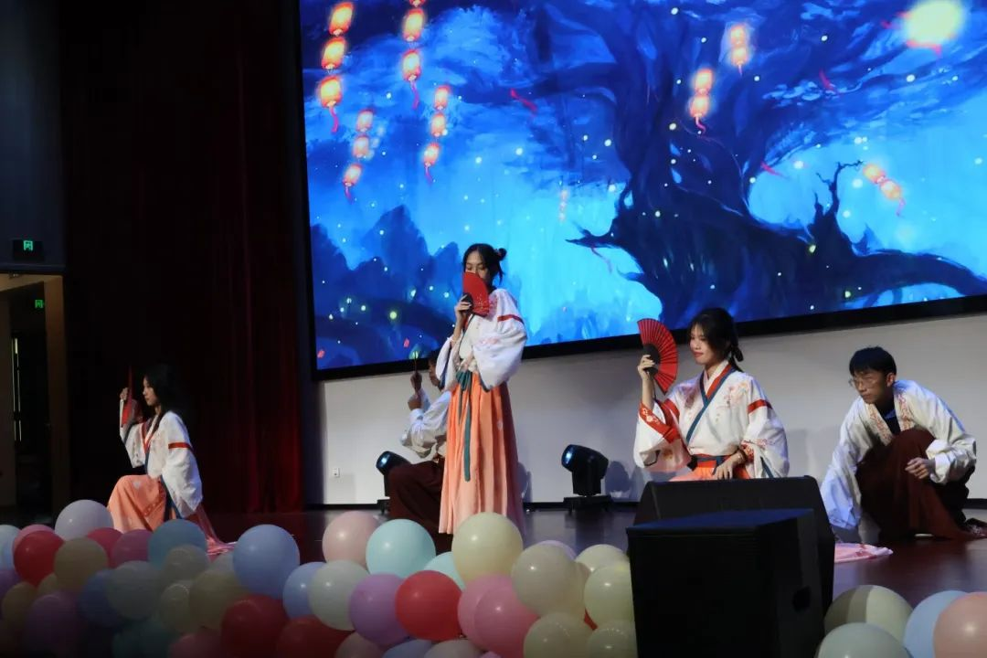 机电工程学院《寄明月》:《寄明月》舞蹈精彩非凡融合传统与现代,舞者们着特色服饰、持扇而舞。舞蹈如同月光下的精灵,轻盈而优雅,让人目不转睛。舞蹈中的扇子技巧和动作设计展现了中国传统舞蹈的优雅与现代流行舞蹈的活力。
