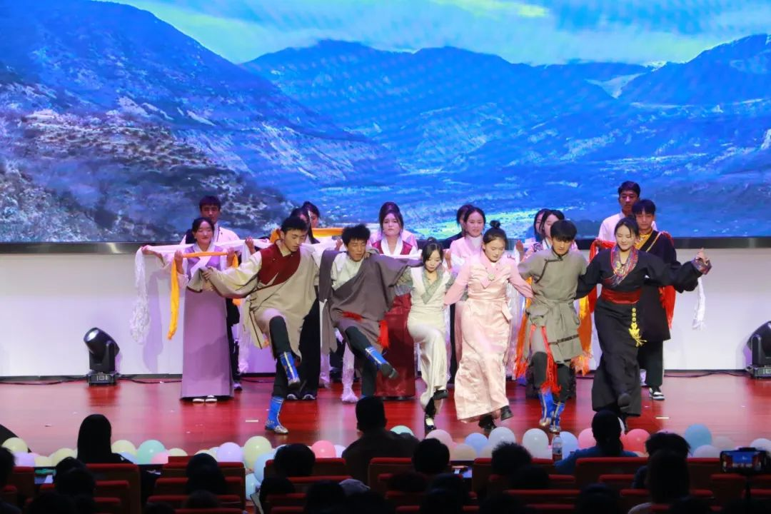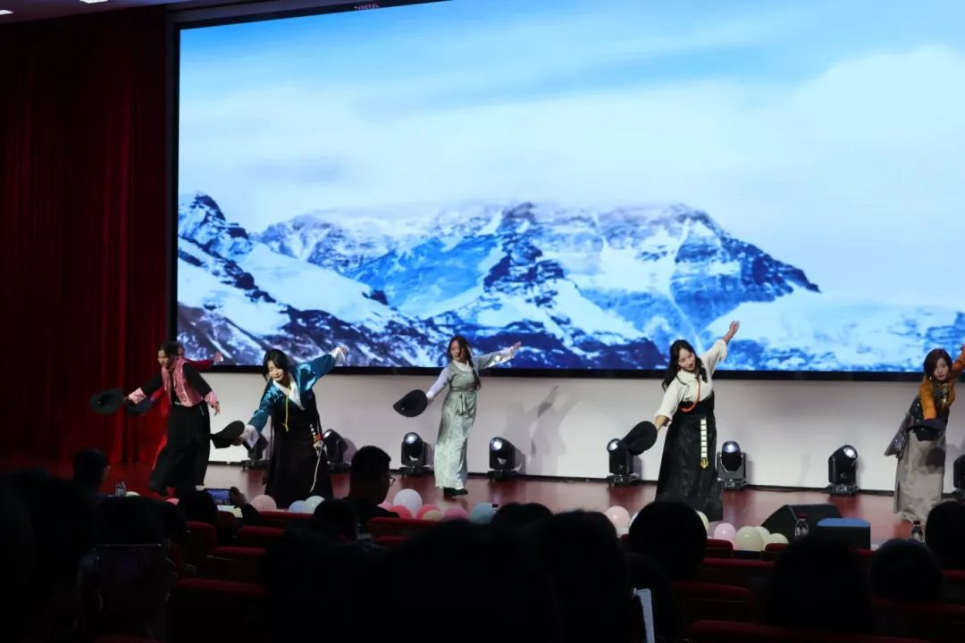 工商管理学院《汉藏共舞心相印》:这次的舞蹈融合了汉族舞蹈的柔美细腻和藏族舞蹈的豪迈奔放,舞者们在舞蹈中展现出对两种文化的尊重与热爱。她们的舞蹈动作与复杂的节奏配合严谨,展现出朴实自如、轻捷灵活的风格。这支舞不仅在艺术形式上展现了藏族与汉族舞蹈的独特魅力,也在文化层面上传达了两族人民的精神风貌和审美追求。