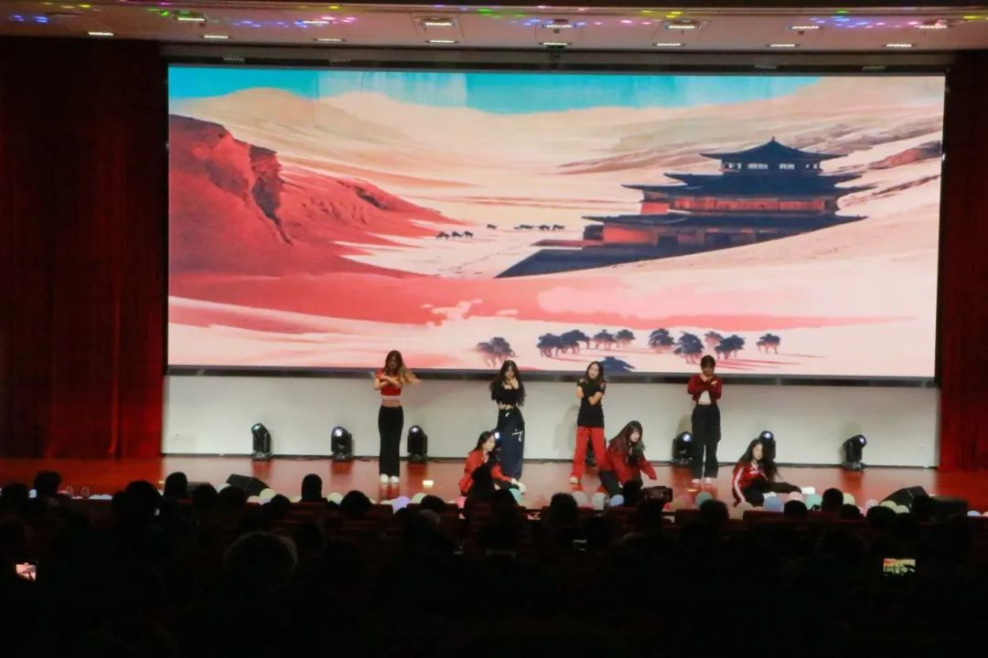 外国语学院《Black Venom》:《Black Venom》是由韩国女团aespa的《Black Mamba》与韩国女团BLACKPINK的《Pink Venom》两首歌进行融合改编的表演形式,将这两首kpop歌曲进行串烧。舞者们的舞蹈让人感受到了爵士舞的魅力,每一个动作都充满了力量和控制,展现了高超的舞蹈技巧。