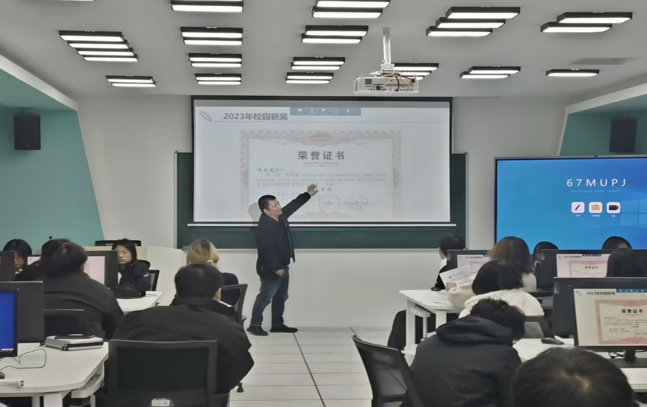 姜老师首先展示了往届优秀学长学姐的作品,向同学们介绍撰写论文的重要性以及相关比赛,展示了学长学姐们获得的荣誉。鼓励同学们向学长学姐学习,积极构思自己的论文,踊跃参加比赛。