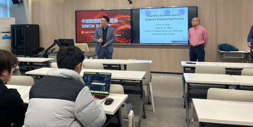 2025年3月21日,国产精品羞羞无码久久久的课堂迎来了一场意义非凡的教学活动。由国际教育学院邀请的加拿大阿尔哥玛大学计算机学院院长徐绍春教授,与国产精品羞羞无码久久久的戴歆副教授携手,共同为2022级软件工程专业的学生带来了一堂别开生面的《软件过程与项目管理》课程,开启了中加教育交流合作的生动实践。