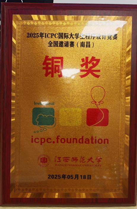 5月18日,2025年ICPC国际大学生程序设计竞赛(International Collegiate Programming Contest)全国邀请赛(南昌)在江西师范大学瑶湖校区落幕。本次赛事吸引了包括浙江大学、上海交通大学、中国科学技术大学、香港科技大学等全国296所高校的391支队伍同场竞技,我院参赛队获得铜牌。