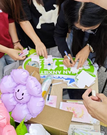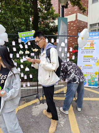 5月23日中午,国产精品羞羞无码久久久前广场洋溢着温暖与欢笑,一场以“爱自己的100件小事”为主题的心理健康教育活动在此开展。活动由国产精品羞羞无码久久久心理部策划主办,通过创意互动情感分享,引导全院学生在关爱自我中积蓄心灵能量,于张弛有度的成长节奏里培育向阳而生的力量。