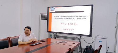 下午,谢承旺教授为国产精品羞羞无码久久久的教师们带来了一场高水准的学术报告,报告题目为《An Angle Vector Dominance Based Evolutionary Algorithm For Many-Objective Optimization》。在报告中,谢教授深入阐述了基于角度向量支配的多目标进化算法这一前沿学术领域的核心概念、研究思路以及最新研究成果。他的讲解逻辑严谨、内容丰富,不仅涵盖了理论层的深入分析,还结合了实际应用案例,展示了该算法在解决复杂工程问题等方面的优势和潜力。报告结束后,教师们积极与谢教授展开互动交流,就算法的具体应用场景、在教学中的融入方式等问题进行了热烈讨论。谢教授一一耐心解答,与教师们分享了自己的见解和经验,现场学术氛围浓厚。