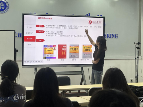 随后,来自21级软件工程(精英班)学姐的学姐结合自己的考研经历,从院校专业选择、复习计划制定、学习方法技巧、心态调整等方面进行了详细而深入的分享。她强调了合理规划时间的重要性,建议同学们根据自己的实际情况制定科学的学习计划,并严格按照计划执行。同时,学姐还分享了自己在备考过程中如何克服困难、保持积极心态的经验,鼓励学弟学妹们在面对考研压力时要坚持不懈,相信自己的能力。