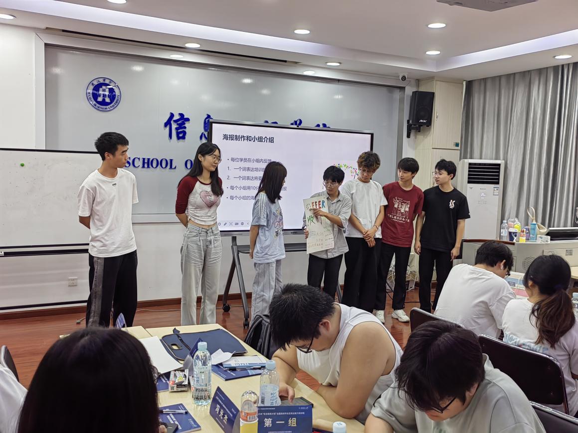 9月13日上午,活动在轻松活跃的氛围中展开。武汉理工大学张然老师通过“同心圆”破冰活动和团队协作设计任务,引导同学们在共同创作队名、口号、Logo与旗帜的过程中增进了解、建立信任。这一环节不仅让同学们体验到团队合作的乐趣,更让大家深刻认识到沟通与协作在未来职场中的重要性。下午,陈梦霖老师运用“求职九宫格”分析法,带领大家从兴趣、能力、行业趋势等多个维度帮助学生全面梳理个人特质与发展方向,让原本模糊的未来规划变得清晰,增强了学生们的求职信息。